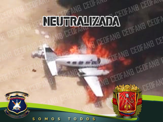 #Venezuela reports destruction of another Narco-aircraft in the southern Edo.#Zulia , within the framework of the Operation#EscudoBolivarianoTiburón2020 pic.twitter.com/2I9NSJqeFG