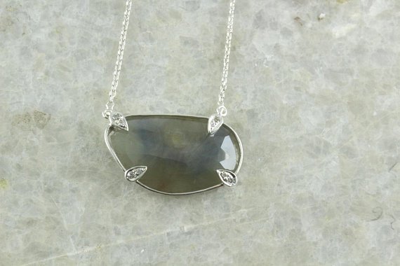 Grayish Blue Sapphire & Diamond Pendant Necklace, 925 Sterling Silver, Anniversary Gift