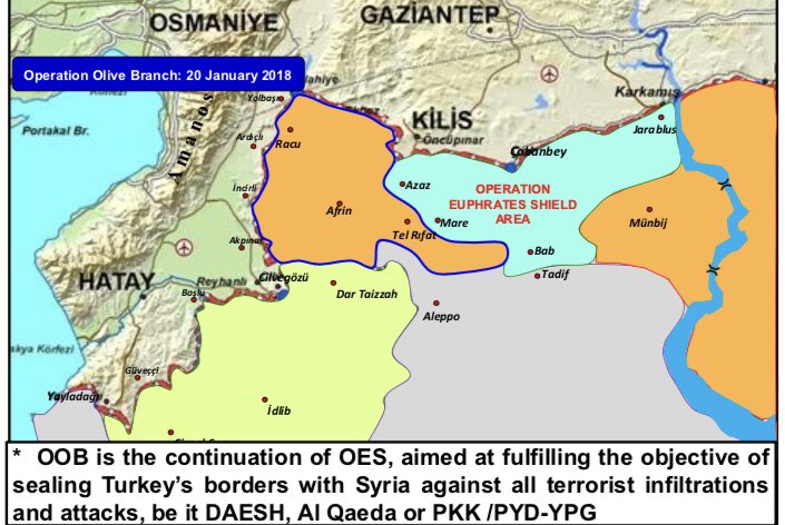 #OperationOliveBranch (OOB) is the continuation of#EuphratesShield (OES) to clear Turkey’s borders w/ Syria of all terrorist infiltrations&attacks,ISIL,Al Qaeda or PKK /PYD-YPG. OES cleared 62 miles of Turkey-Syria border now OOB’s target is to clear the remaining. FLOOD pic.twitter.com/V6Lqkg652v