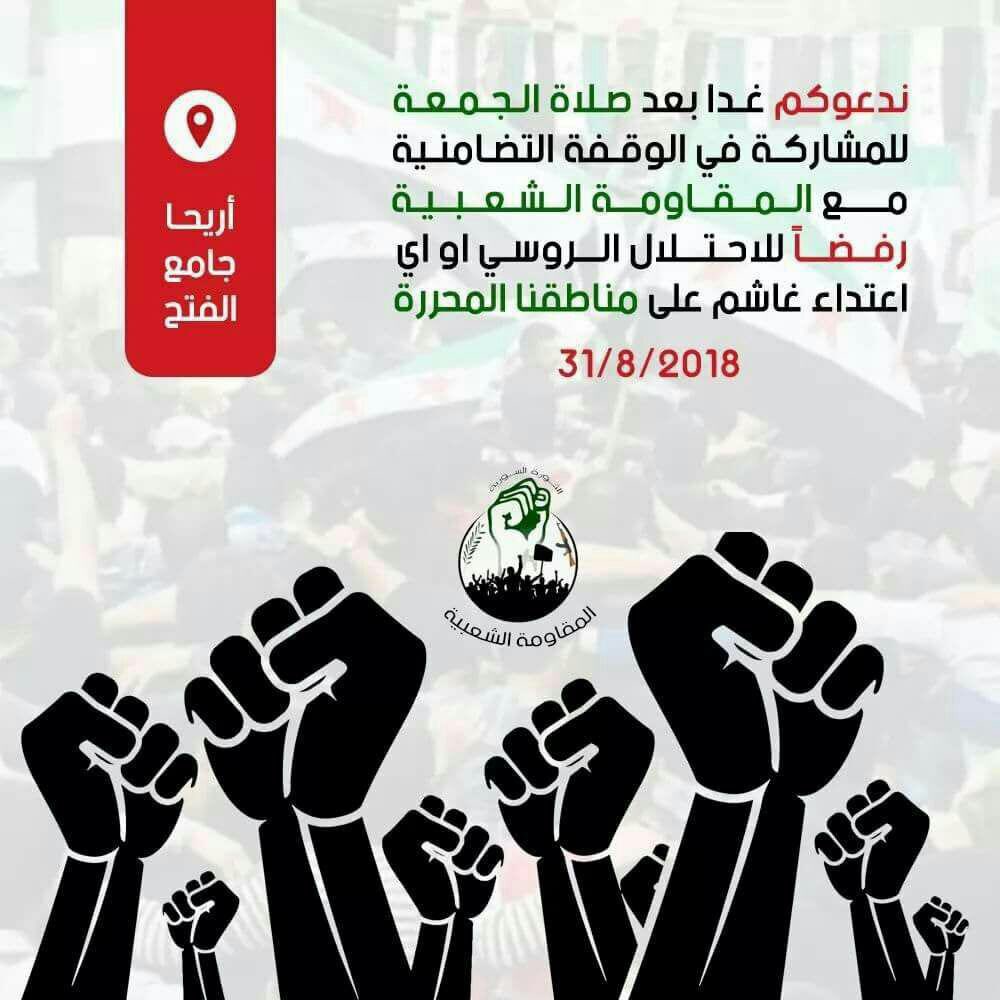 Several organizations and local councils in Idlib area released statements that calls for protests to express their anger against the Russian acts in