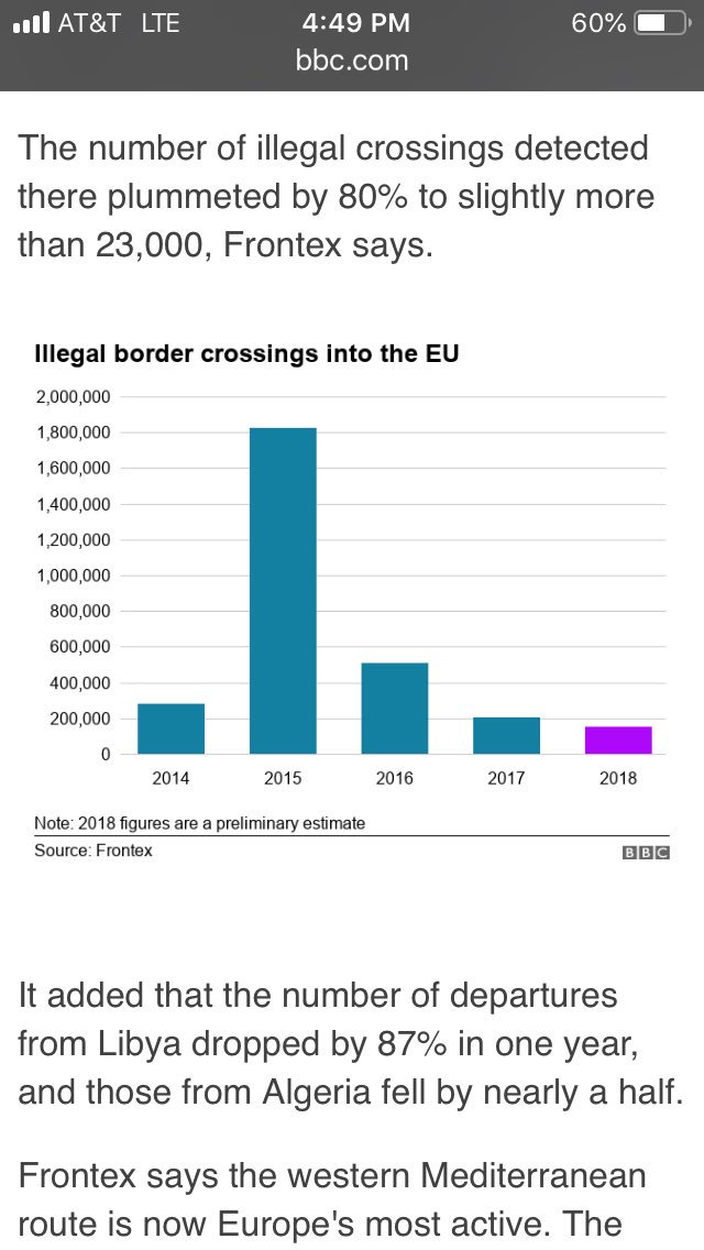 #Europe seeing drop in illegal migrant border crossings ~ big time drop https://www.bbc.com/news/world-europe-46764500 …pic.twitter.com/ZvPmON6iYP