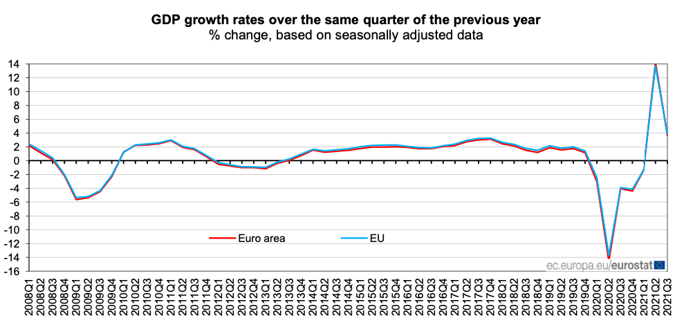 #GDP +2.2% in Q3 2021, +3.7% compared with Q3 2020: preliminary flash estimate from#Eurostat https://ec.europa.eu/eurostat/en/web/products-euro-indicators/-/2-29102021-BP …pic.twitter.com/CEQ6Yr7yPB