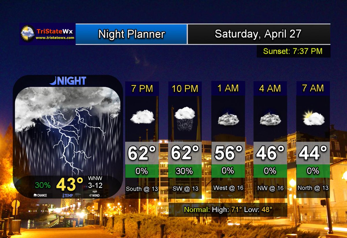 Night Planner Saturday: Mostly Cloudy with a Chance of Scattered Showers & T-storms this evening. Breezy and Cool.