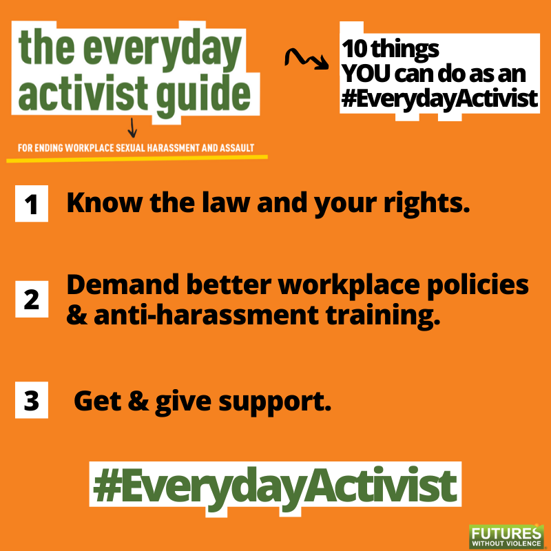 #EverydayActivist, there are 10 things you can do to make#workplaces safer & help end#sexualharassment & violence before it starts. Here are the first three. Follow along as we post all ten and find out more at: https://checkyourworkplace.com/activist-guide/10-things-you-can-do-as-an-everyday-activist …”pic.twitter.com/5jD53XgiPh