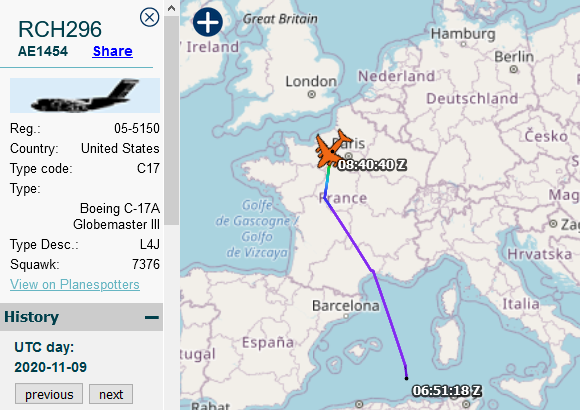 #C17#RCH296 on 05/11. Where did he go after#Rota -#Evreux - Rota?