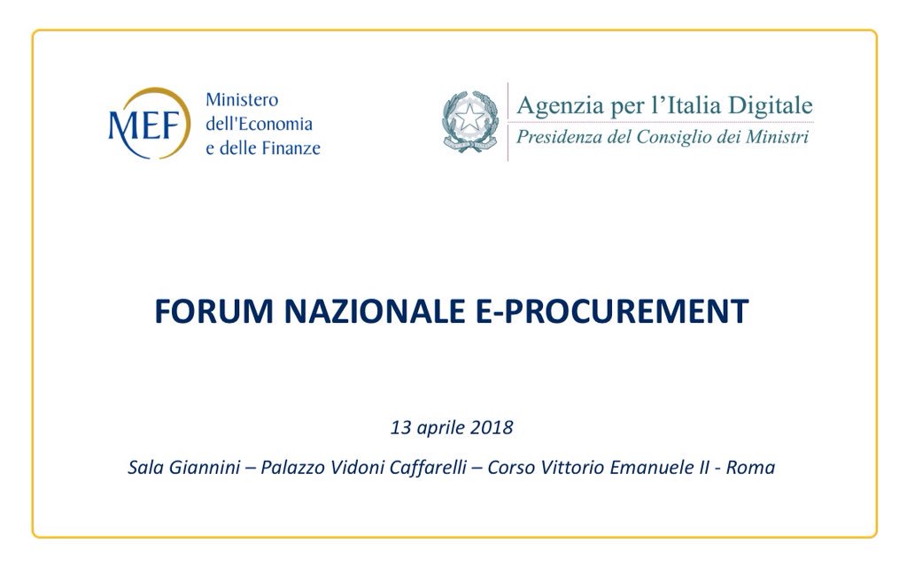 #eProcurement sul sito#AgID le presentazioni su#pianotriennale, mercato elettronico, banca dati nazionale dei contratti pubblici, documento di gara unico europeo#ESPD,#CEF Telecom e-Procurement,#EXEP,#Standard,#Peppol http://www.agid.gov.it/agenda-digitale/pubblica-amministrazione/procurement/forum-procurement …pic.twitter.com/2TMs0TlpKL