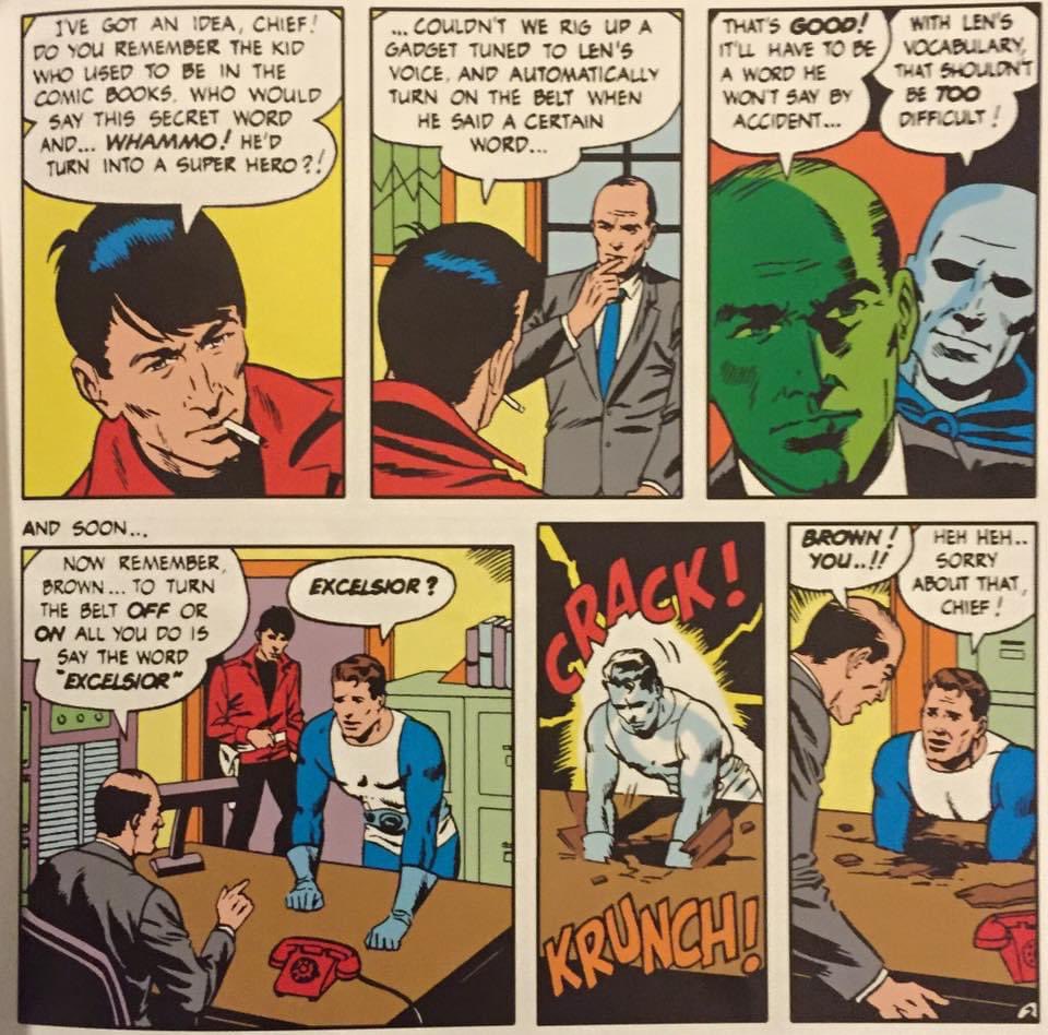 #WallyWood/Dan Adkins has Dynamo's power activating word to be "#Excelsior!" It is#Latin for "ever upward" and was used on the NY state seal for more than a century.#StanLee first used "Excelsior" in his Soapbox FF 71, 1968 AFTER Wood.pic.twitter.com/kcZUQYagXZ