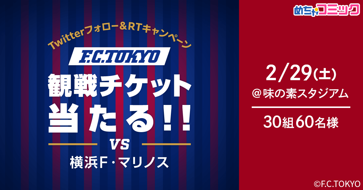 2/29(土)#FC東京 vs 横浜F・マリノス戦の観戦ペアチケットを抽選でプレゼント