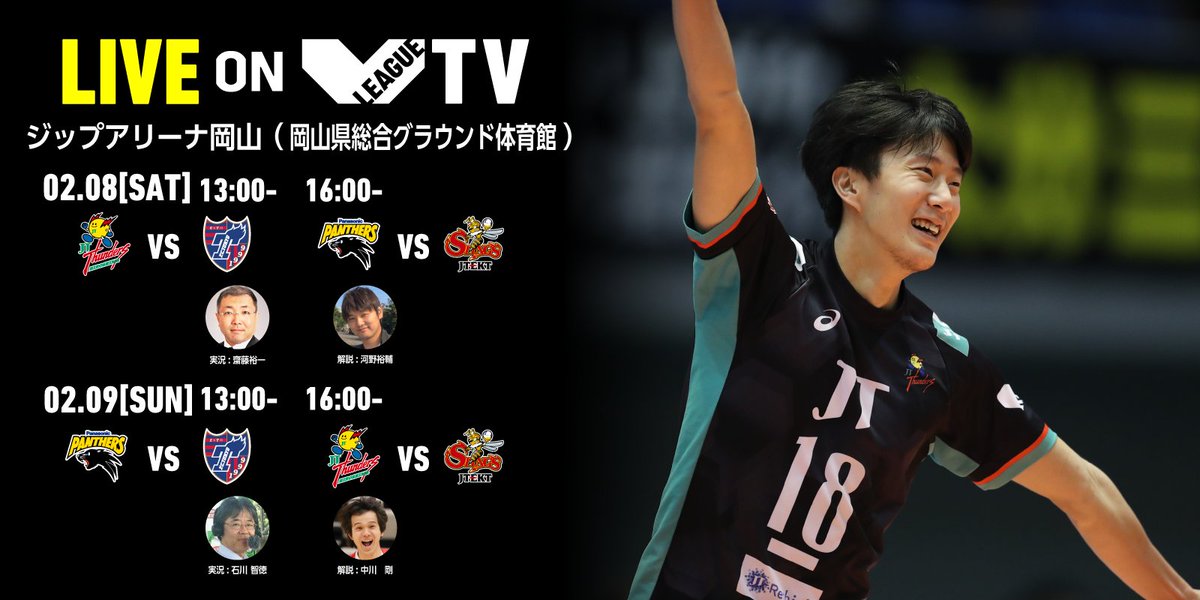 #V1男子 V .TV情報】 2/9(土) 13:00〜#パナソニック vs#FC東京 https://vleague.tv/match/live/710 16:00〜#JT広島 vs#ジェイテクト https://vleague.tv/match/live/711 実況:石川 智徳さん、解説:中川 剛さんでお届けします