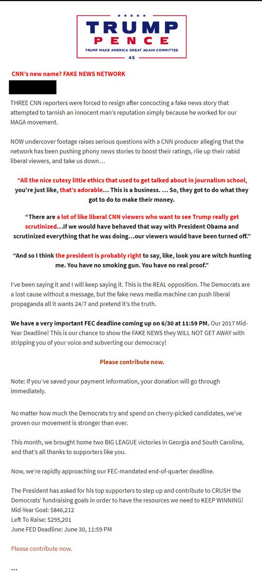 Trump #fundraising letter for 2020 re-election campaign. Contains quotes from#ProjectVeritas.#TrumpRussia#CNN#FEC@Acosta@CNNPoliticspic.twitter.com/KFjk36j2JK