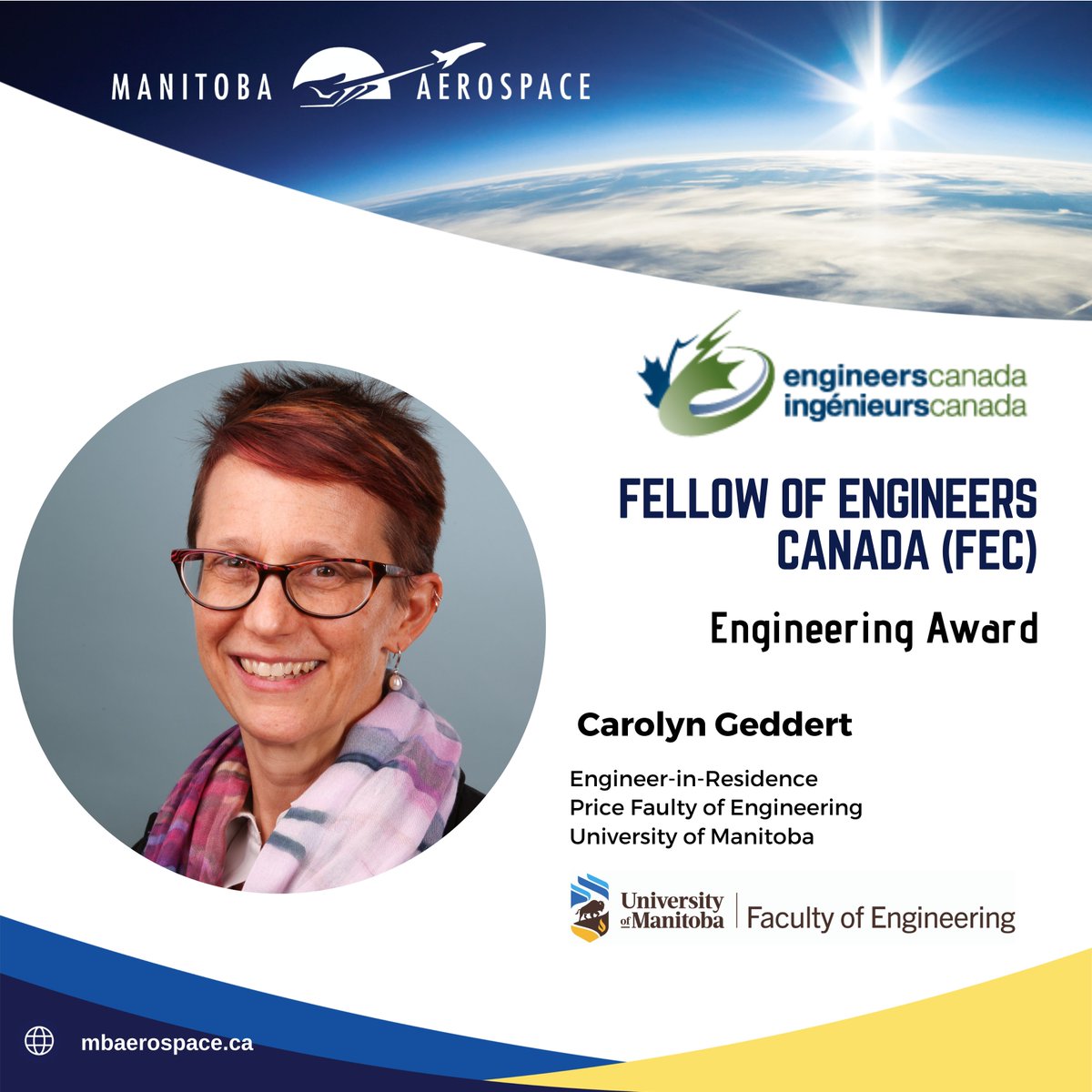 #engineer Carolyn Geddert! Well deserved, you have done so much for the engineering community!@EngGeoMB@EngineersCanada#FEC#penghttps://twitter.com/mbaerospace/status/1320823576937799680 …