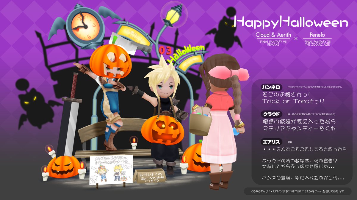 #HappyHalloween 】 配信告知に合わせてちょっぴりフライング。 本日もパンネロ(#小澤真利奈 さん)がFF12TZAをプレイするってよ!#FF12TZA#パンネロ#クラウド#エアリス#くるみらTV#ハッピーハロウィン https://twitter.com/marinakozawa/status/1452823878896480256 …pic.twitter.com/VFnDdCpmdn
