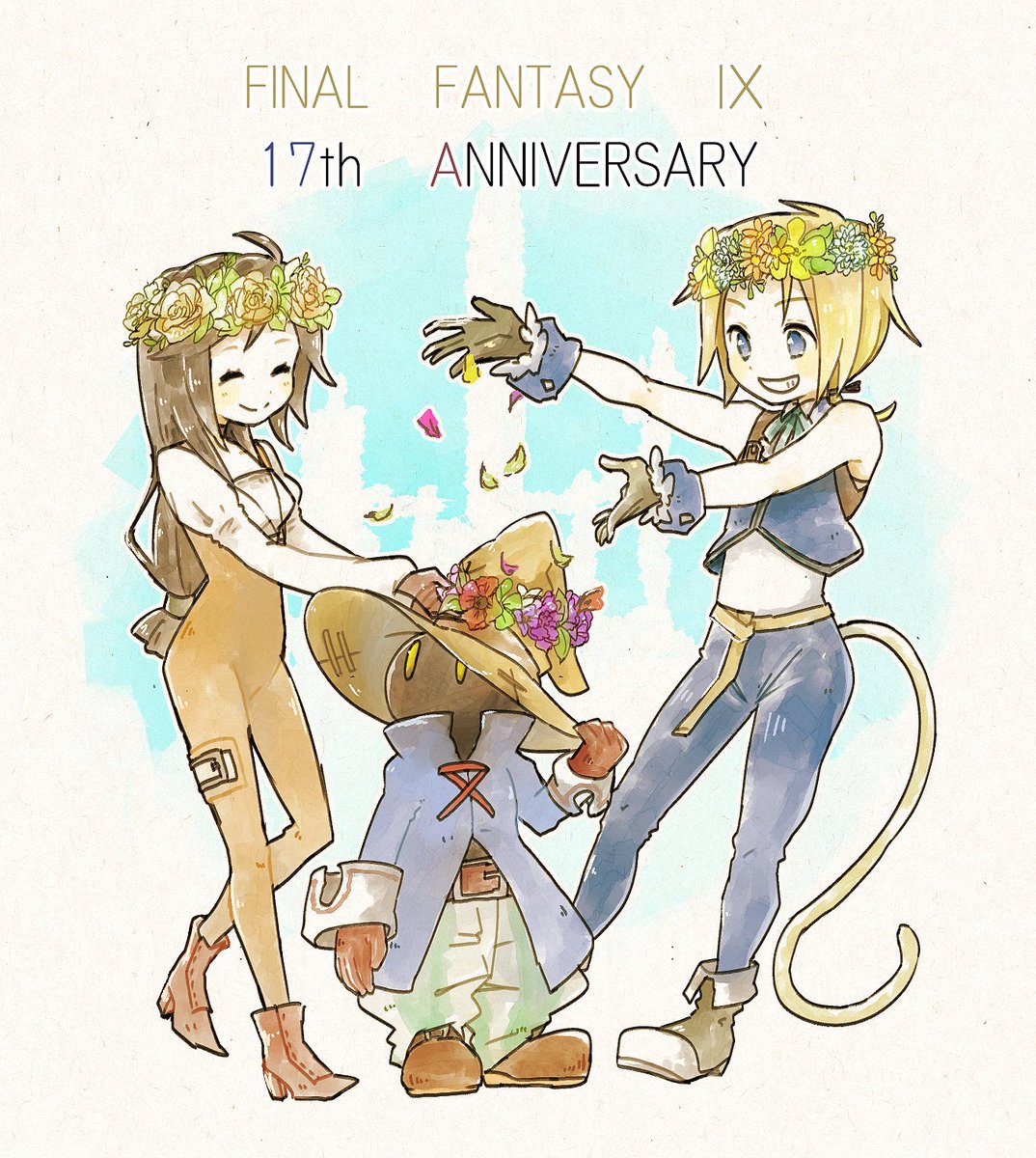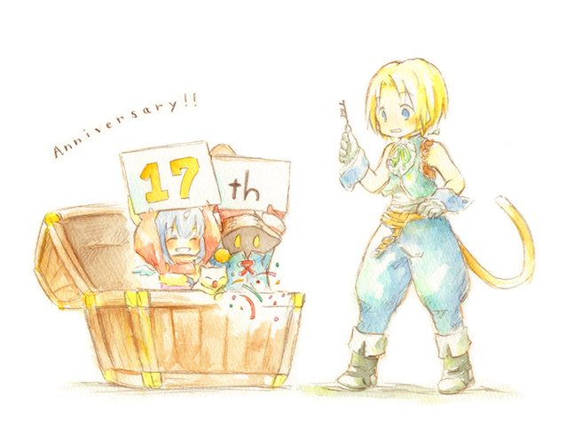 FF9、17歳おめでとう!生まれてきてくれて本当にありがとう!事前に知ってたらなんか描いたのに!!同じ絵ですみません。でも何処かで制作に携わっていた人がこのタグを見るかもしれないし、一人でも多くのファンに愛されてると伝わってほしい!