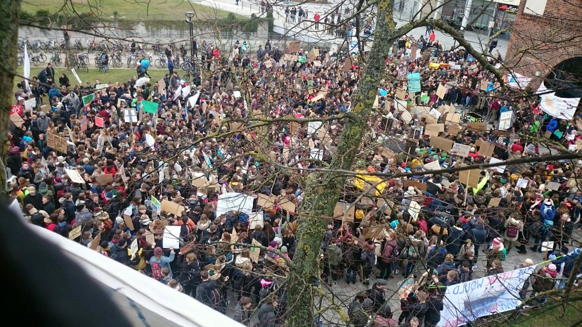 #FridaysForFuture heute in#fffhro Rostock war ein voller Erfolg. ca. 1700 Leute waren da. es gab sogar eine spontane Demo durch die Haupteinkaufsstraße. pic.twitter.com/1Uo79AMb3I