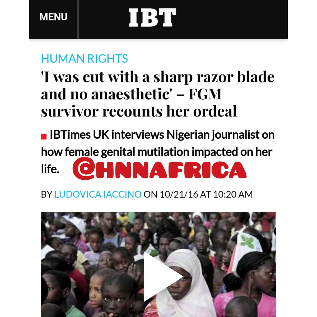 #FGM. Nobody talks in#Nigeria. Together we must put it to an end.@LudovicaIaccino thanks for the impacting interview@IBTimesUKpic.twitter.com/kNqSXaqD8R