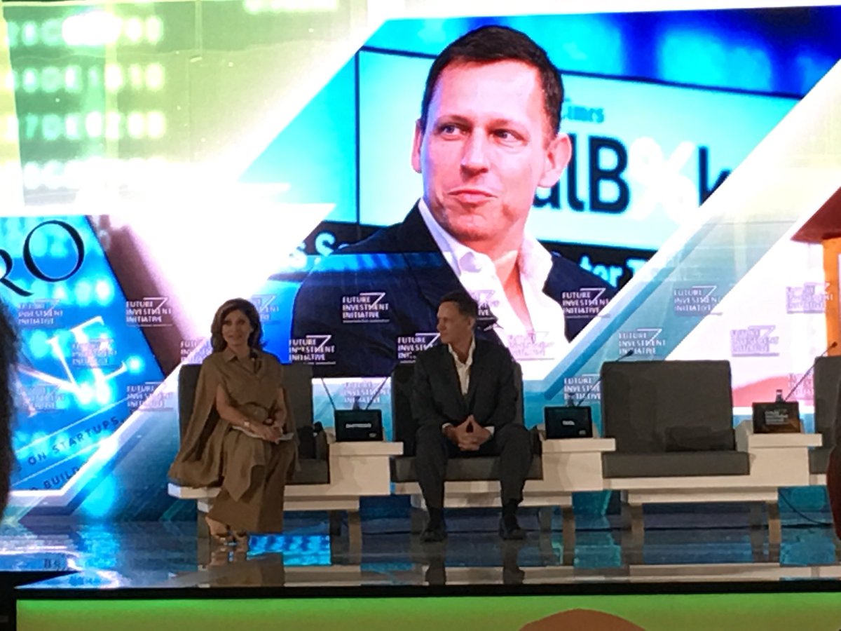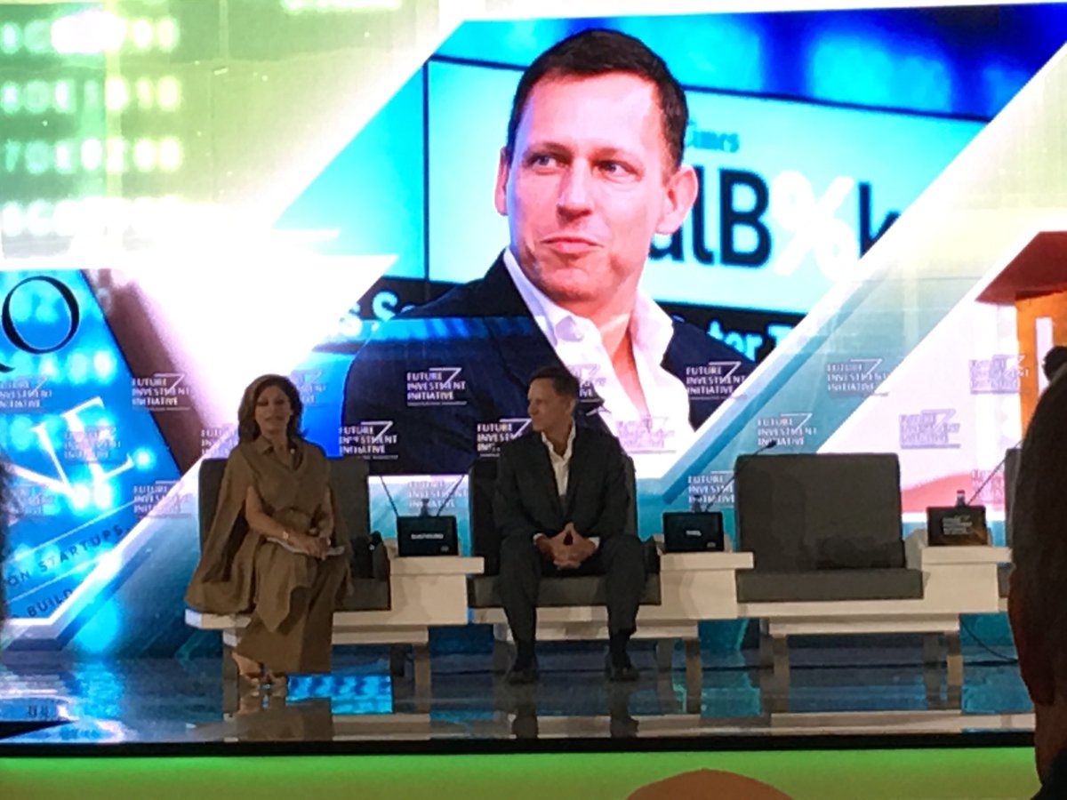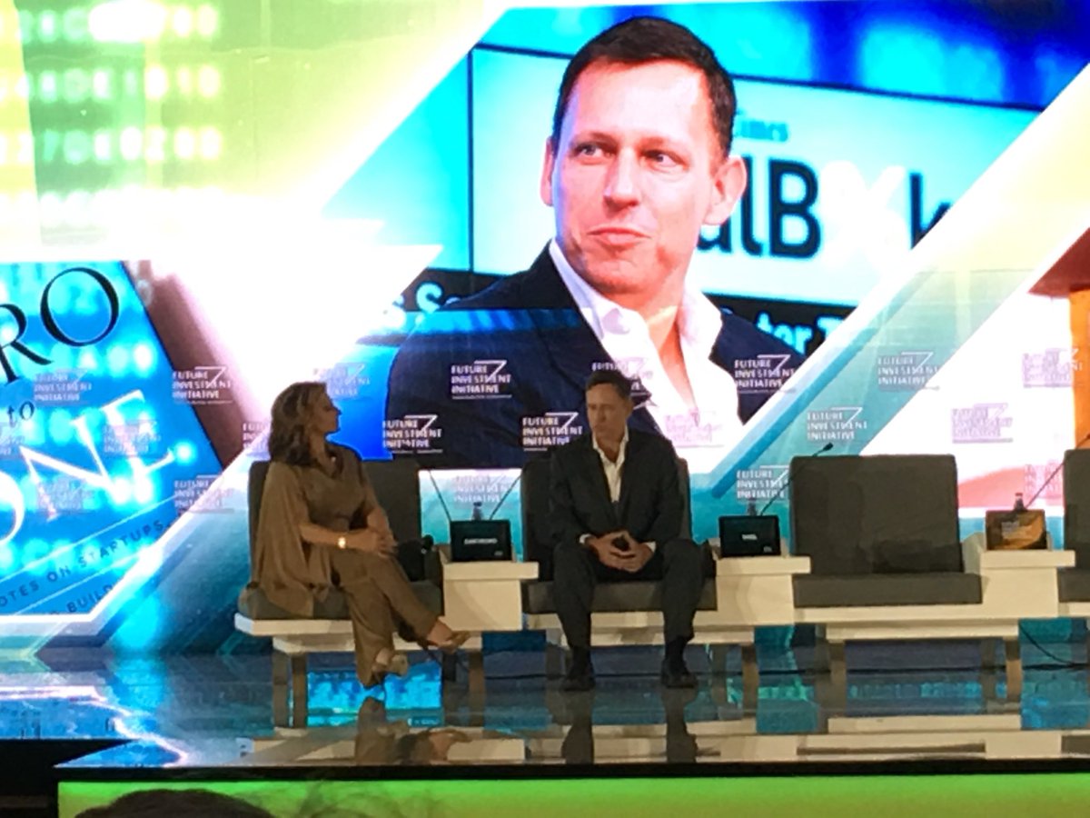 @peterthiel in Riyadh talking about opportunities globally, not just in Silicon Valley! So refreshing to hear#FII2017 pic.twitter.com/jCKzfGxpXq
