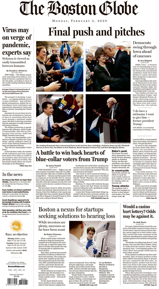 The Iowa caucuses are (finally) here, and Granite Staters are waking up this morning to see Pete Buttigieg on two front pages