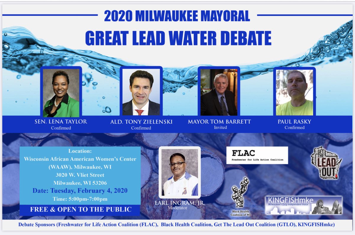 #Wisconsin -#BlackHealthCoalitionofWI#FLAC#GetTheLeadOutCoalition#KINGFISHmke - are sponsoring a Mayoral debate about#LeadInWater in#Milwaukee. Grassroots activism at its best.#EnvironmentalJusticepic.twitter.com/swYfflH5ES