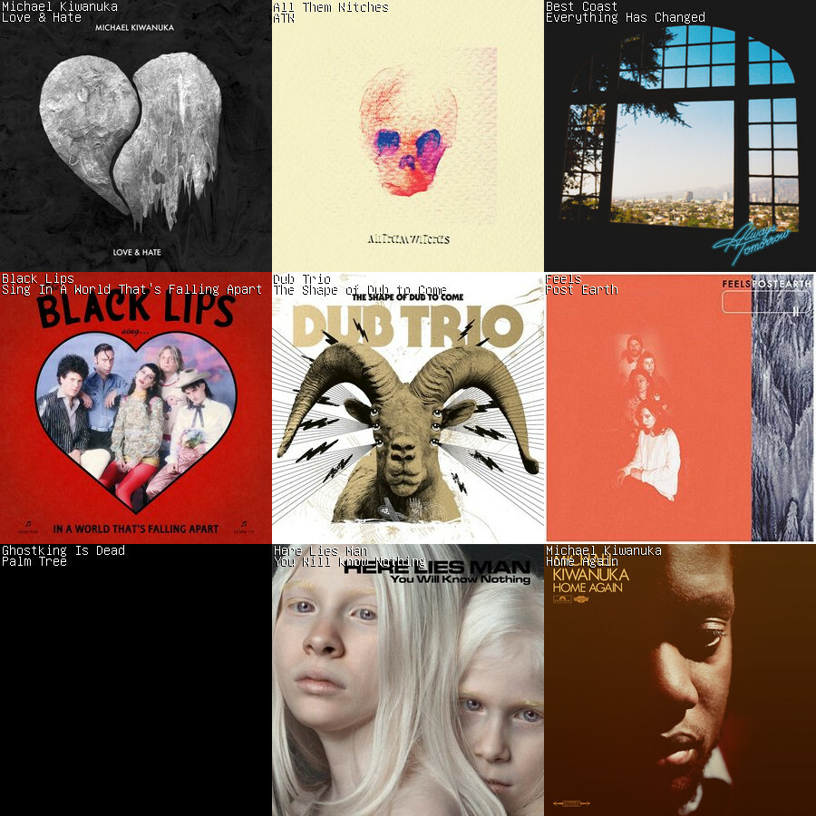 Top 9 Albums I've been shoving down my earholes over the last 7 days. track info: http://last.fm collage: http://tapmusic.net