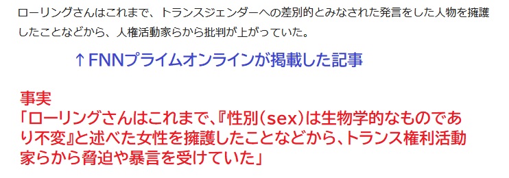 #FNNプライムオンライン 正しくは、「ローリングさんはこれまで、『性別(sex)は生物学的なものであり不変』と述べた女性を擁護したことなどから、トランス権利活動家らから脅迫や暴言を受けていた」です。彼女は、人権活動家から批判されるようなことは何もしてません https://twitter.com/FNN_News/status/1462984542269370368 … pic.twitter.com/swxwQhQgYI