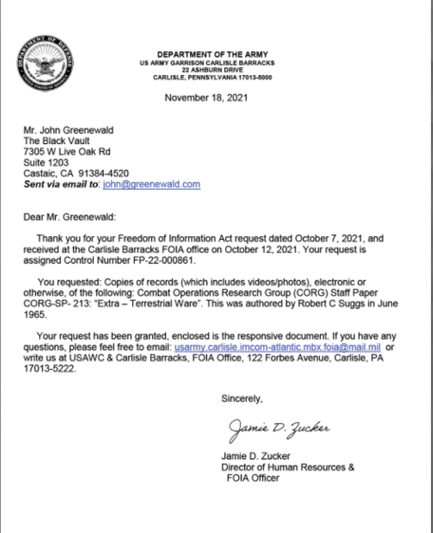 Tutta l'argomentazione si basa su di un fascicolo UFFICIALE declassificato ai sensi del Freedom of information Act