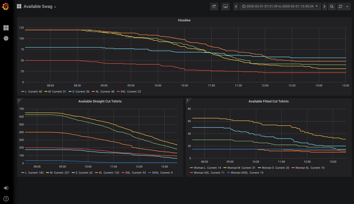 #FOSDEM has a Grafana dashboard, visualizing all sorts of venue related stats (swag count, room noise, wifi, etc). What an awesome idea! https://dashboard.fosdem.org/?orgId=1#FOSDEM20 pic.twitter.com/7TcwWnLlEZ