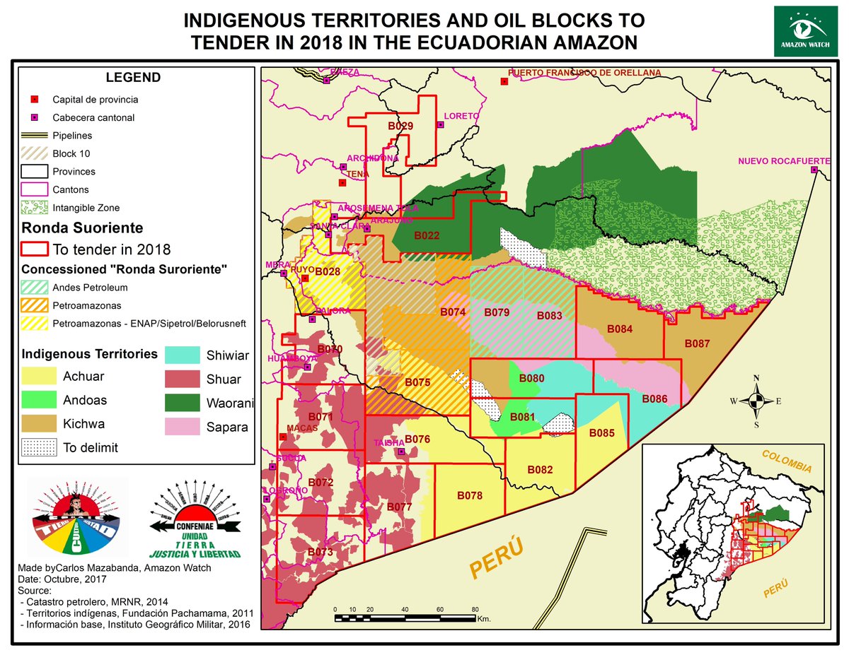 As seen in this map, the 16 oil concessions the government of Ecuador plans to auction off later this year directly overlap with the ancestral territories of numerous indigenous communities, who have not been properly consulted -- let alone given their consent.