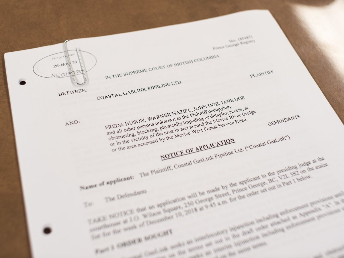 ** BREAKING NEWS: Trans Canada is seeking injunction against Freda Huson and Smogelgum. This violates international indigenous and human rights, violates UNDRIP free, prior informed consent