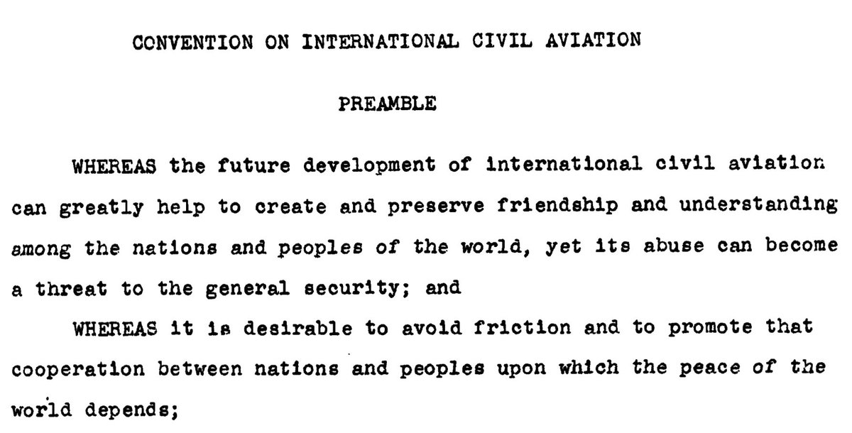 Perhaps it is a good time to remind all nations of the important opening paragraph of the Chicago Convention of 1944. Civil aviation is a force for peace and human connection