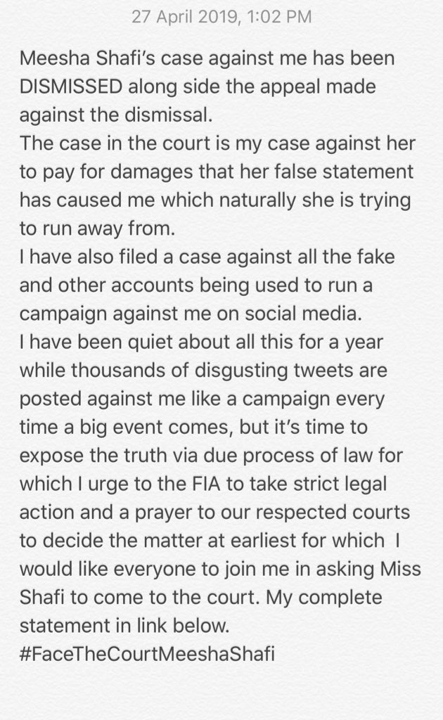 #FaceTheCourtMeeshaShafi https://twitter.com/AliZafarsays/status/1122050935700840448 …