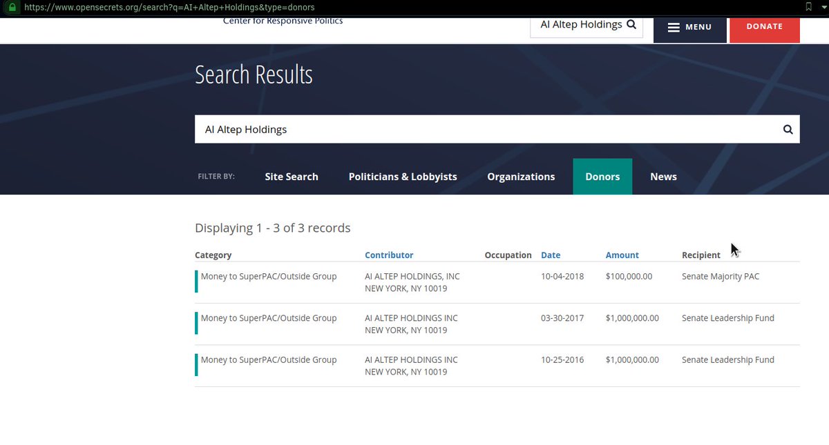 Mr. Needham, As a constituent, I'm curious whether this two $1 million dollar payments from AI Altep Holdings, Inc, a Len Blavatnik company run by Alex, into the Senate Leadership Fund, has anything to do with