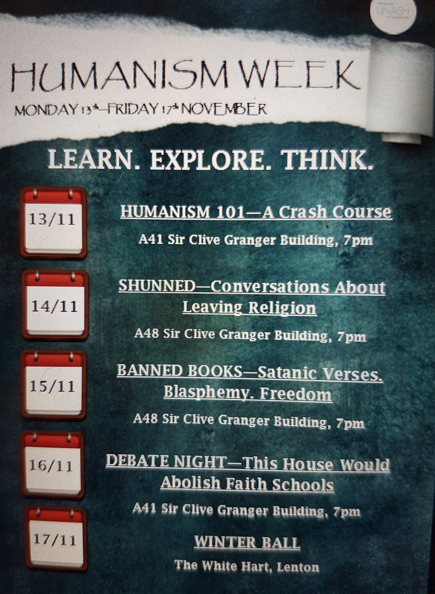 Our week of events coming up from 13-17th November is HUMANISM WEEK and we're thrilled to announce a week jam packed with exciting events from HUMANISM 101 to a debate on