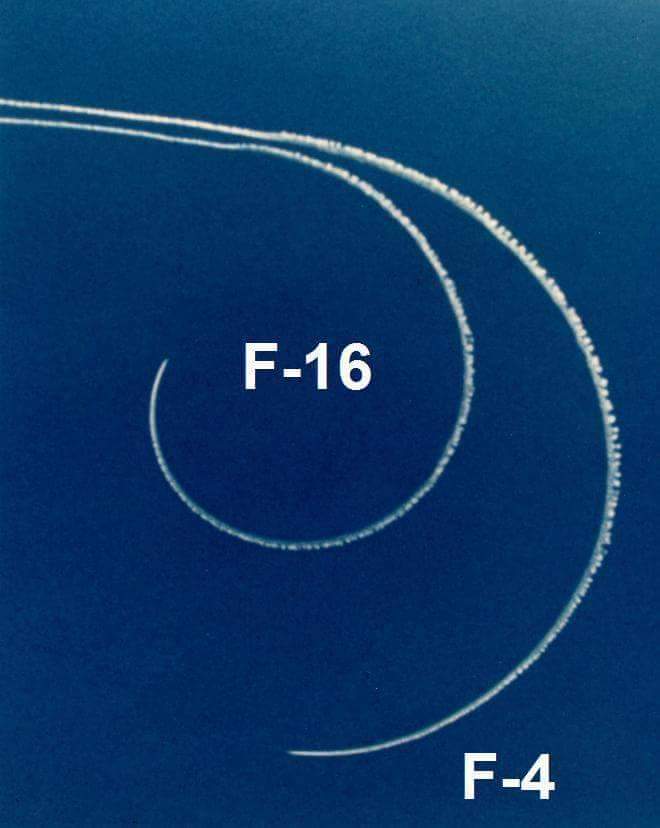 When it comes to knife fighting, very few aircraft can match the performance of an F-16. Here's a classic example of an YF-16 turning inside an F-4 Phantom over Edwards AFB (Circa 1974).