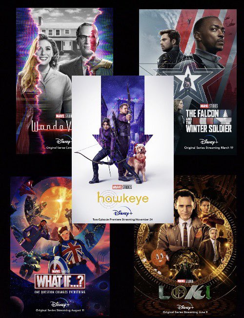 #DisneyPlus#MarvelStudios TV streaming universe so far!#WandaVision#FalconAndTheWinterSoldier#Loki#WhatIf#Hawkeye#Marvel#Posterspic.twitter.com/fjGFbIXMyy