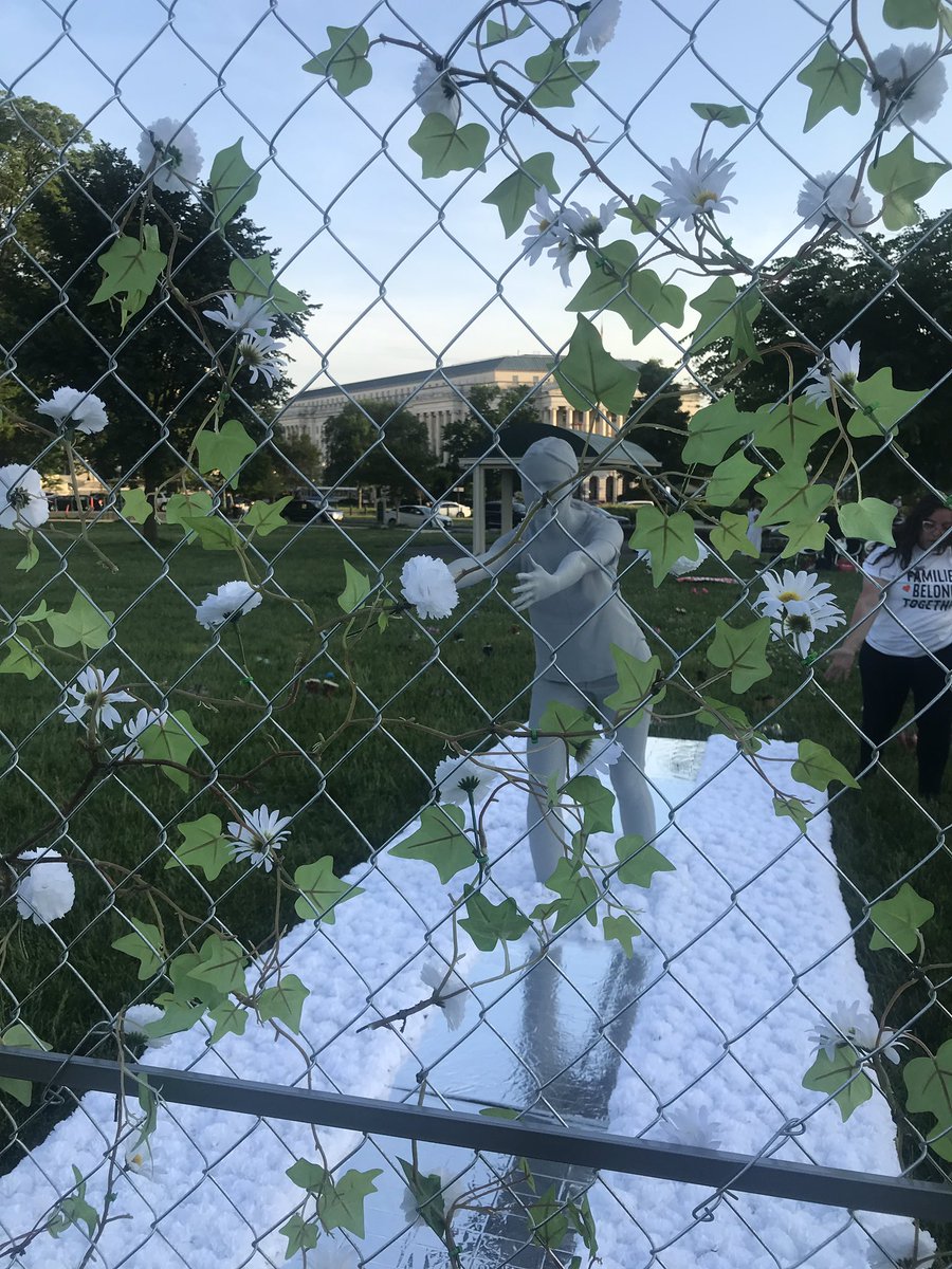 “The statue of a mother is draped by a silver blanket, representing the thermal blanket issued in detention. The woman is reaching toward a boy behind a cage. The tiny shoes represent children still separated from parents.” https://www.usatoday.com/story/news/politics/2019/05/07/migrant-family-separation-under-zero-tolerance-protested-activists-immigration-policy/1132932001/ …