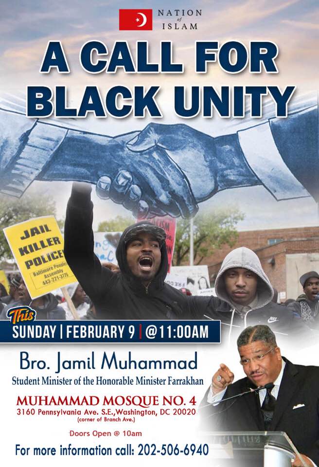 @brotherjamil Muhammad. His Subject: "A Call For Black Unity". Program starts at 11am sharp.#Farrakhan#WeAreFarrakhan#NOISundayspic.twitter.com/ROitc1EzeH