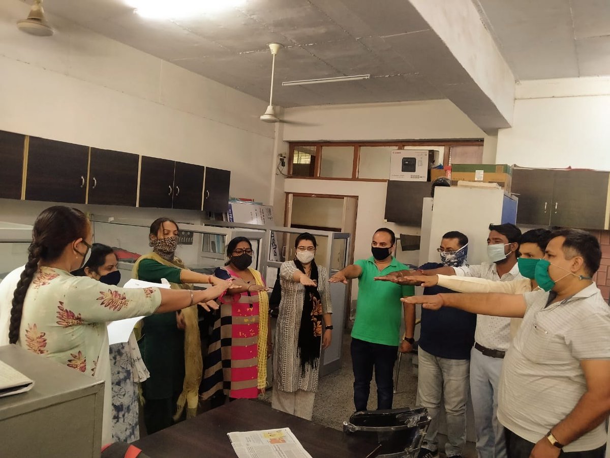 Officials of the Women & Child Development Department taking pledge under the campaign "Jan Andolan Campaign on COVID-19" launched by Hon'ble Prime Minister Sh. Manohar Lal Khattar Ji.