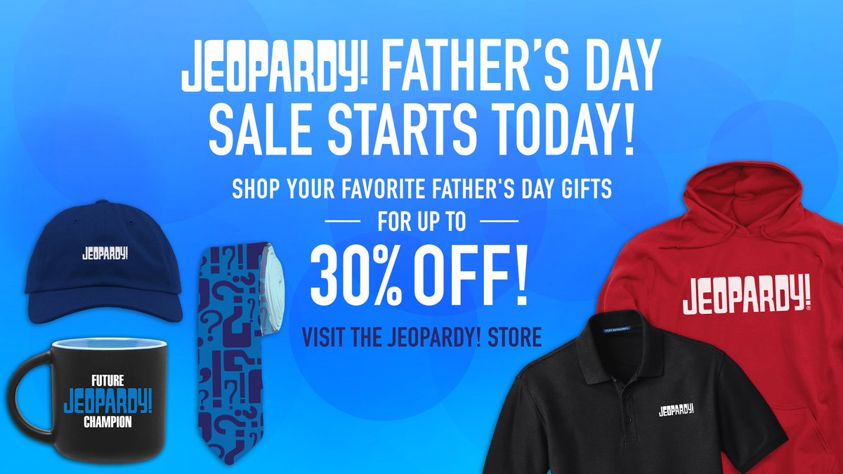 With everything up to 30% off sitewide, The Jeopardy! Store has what you need to gear up dad for