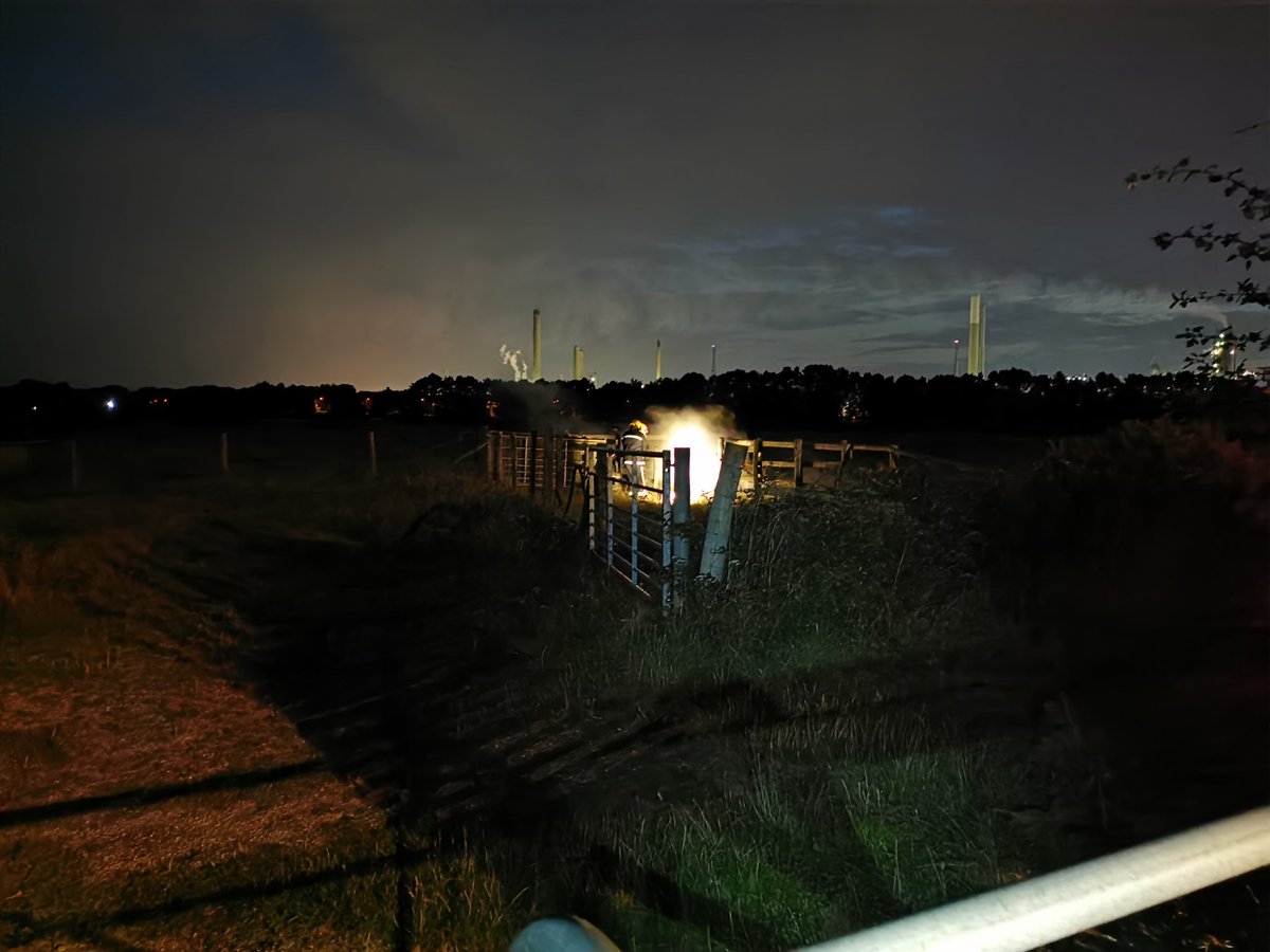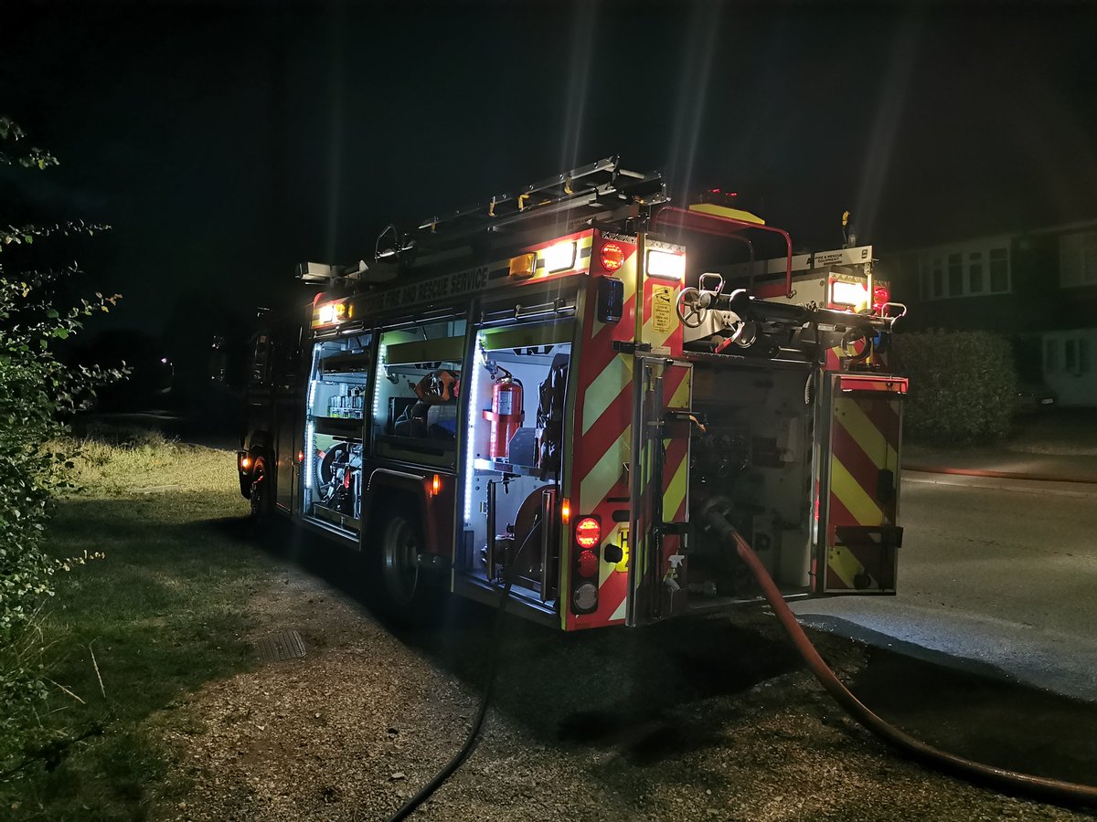 #BellsDown just after 04:00 this morning as reserve pump #7 is mobilised to a fire in a horse enclosur3 in#Fawley, fortunately no animals were hurt. 1 x HRJ & TIC used to extinguish the fire. Did you see anyone acting suspiciously on Blackfield Road at this time? Please call 101 pic.twitter.com/VrafM4rqi4