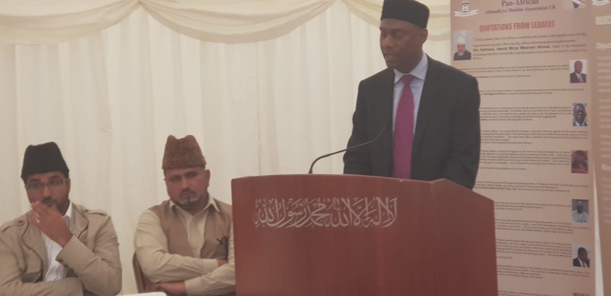 #PAAMA President Tommy Kallon addressing guests at the PAAMA UK#Jalsa Salana Reception & Merit Awards event today in#Fazl Mosque, London. pic.twitter.com/zYM9rNw9cL