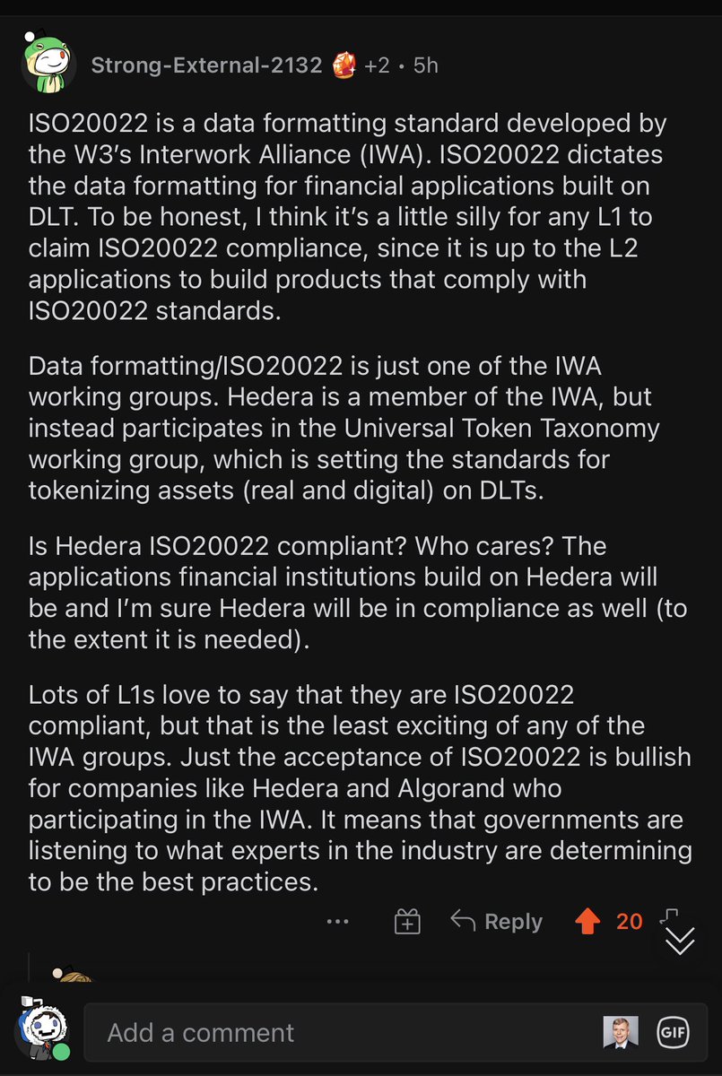 since the fed is adopting the ISO20022 standard…what does that mean for Hedera? This comment might put it into perspective :)