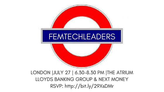 #FemTechLeaders summer session is on! Thanks to@LBGDigi & @NextBankEurope RSVP now: http://bit.ly/29XsDMr pic.twitter.com/SahcbK6Gpl