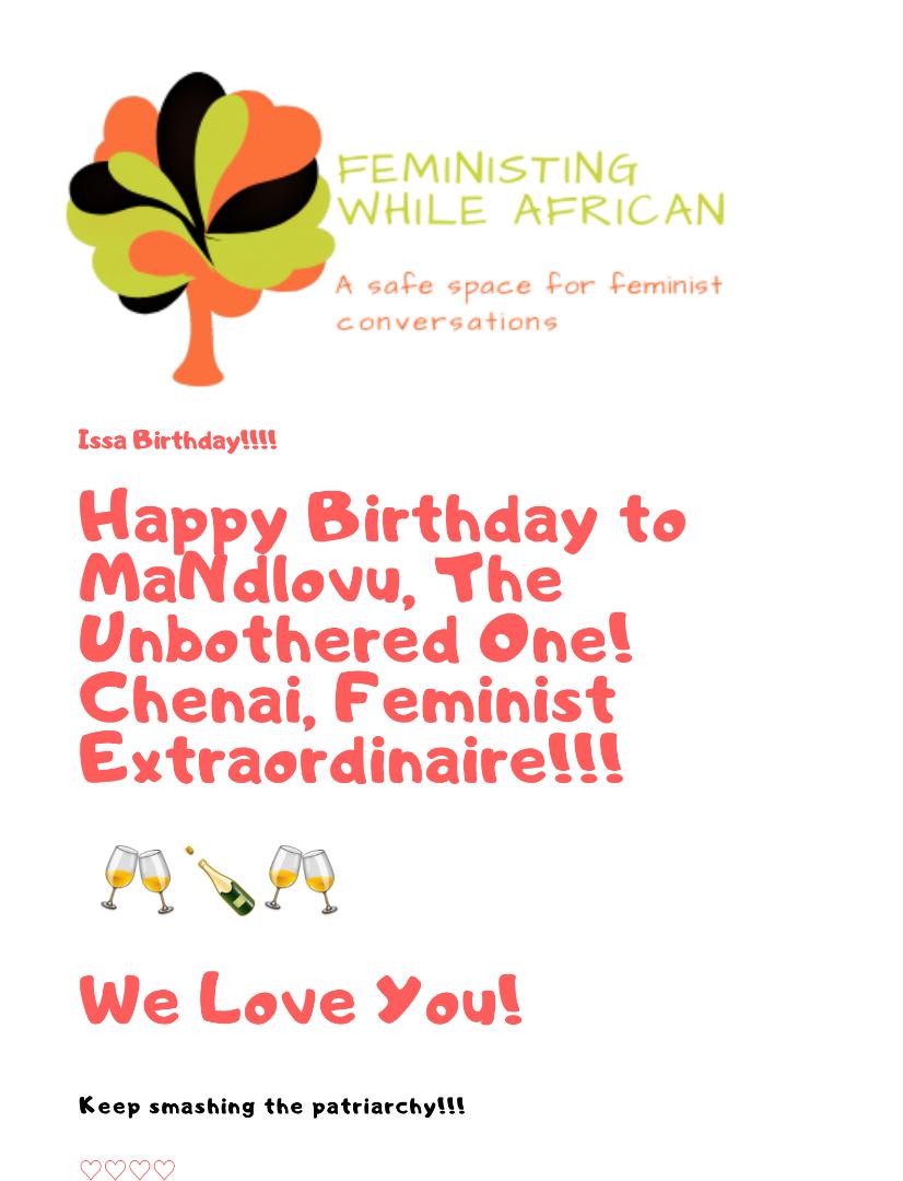#ChenaiDay#FeministingWhileAfrican#HappyBirthdayChenaipic.twitter.com/kjPSjVBACt