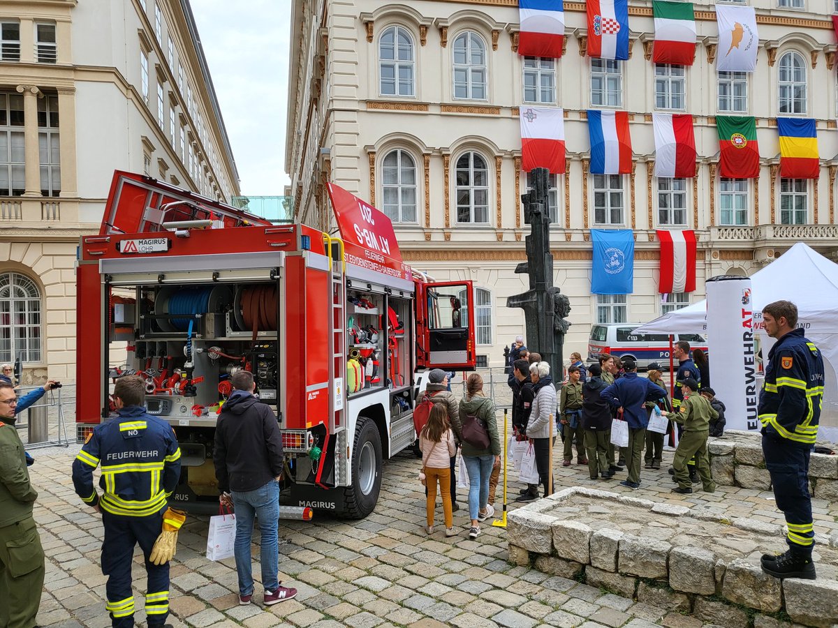#Waldbrand Löschfahrzeug beim Tag der offenen Tür am Minoritenplatz. Der Einsatz im südl. NÖ zeigt die Notwendigkeit solcher Ausrüstung#Feuerwehr#SKKMpic.twitter.com/cOGIesyu0q