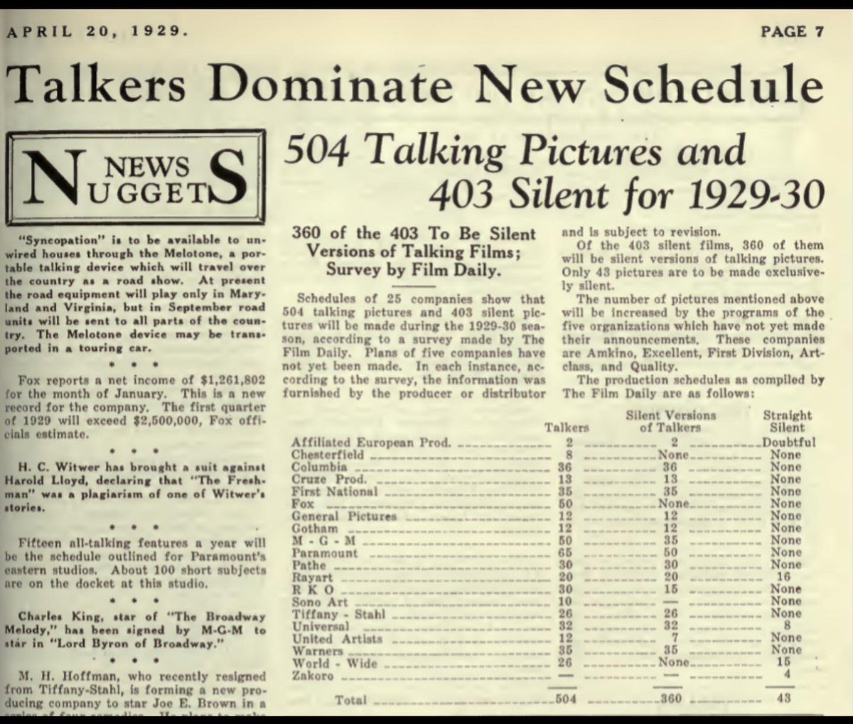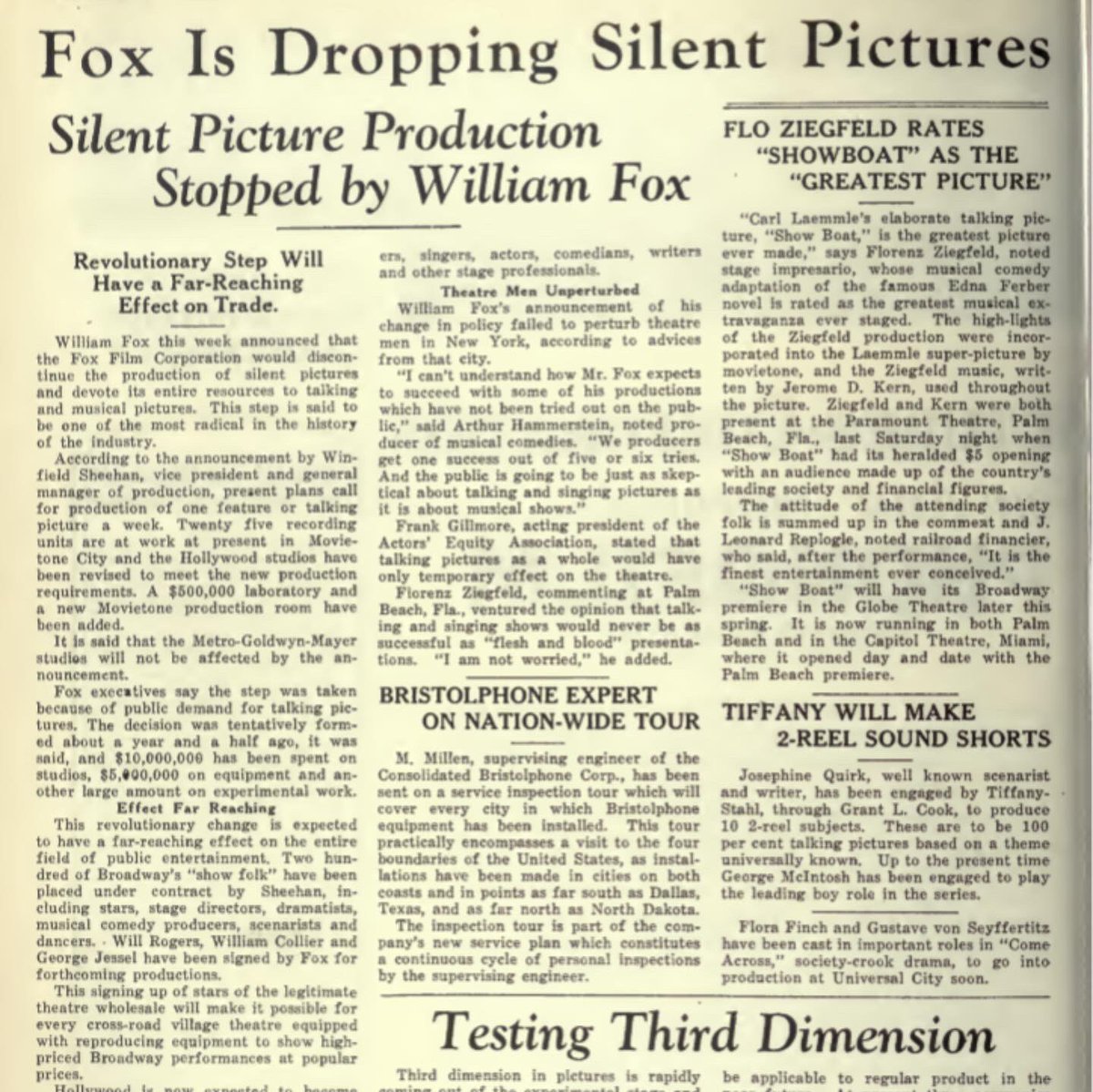 Boxoffice Pro - A Century in Exhibition. The Arrival of Sound. Headlines from 1929.