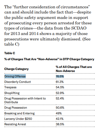 @BostonGlobe. Under Conley, 76% of@SCDAONews MV offenses in 2013-2014 were dismissed. Before#TheRollinsMemo, driving charges were overwhelmingly dismissed & diverted.@DARollins just doesn't add#finesandfees that criminalize poverty to reach fair outcomes! pic.twitter.com/F2QGLZOtp6