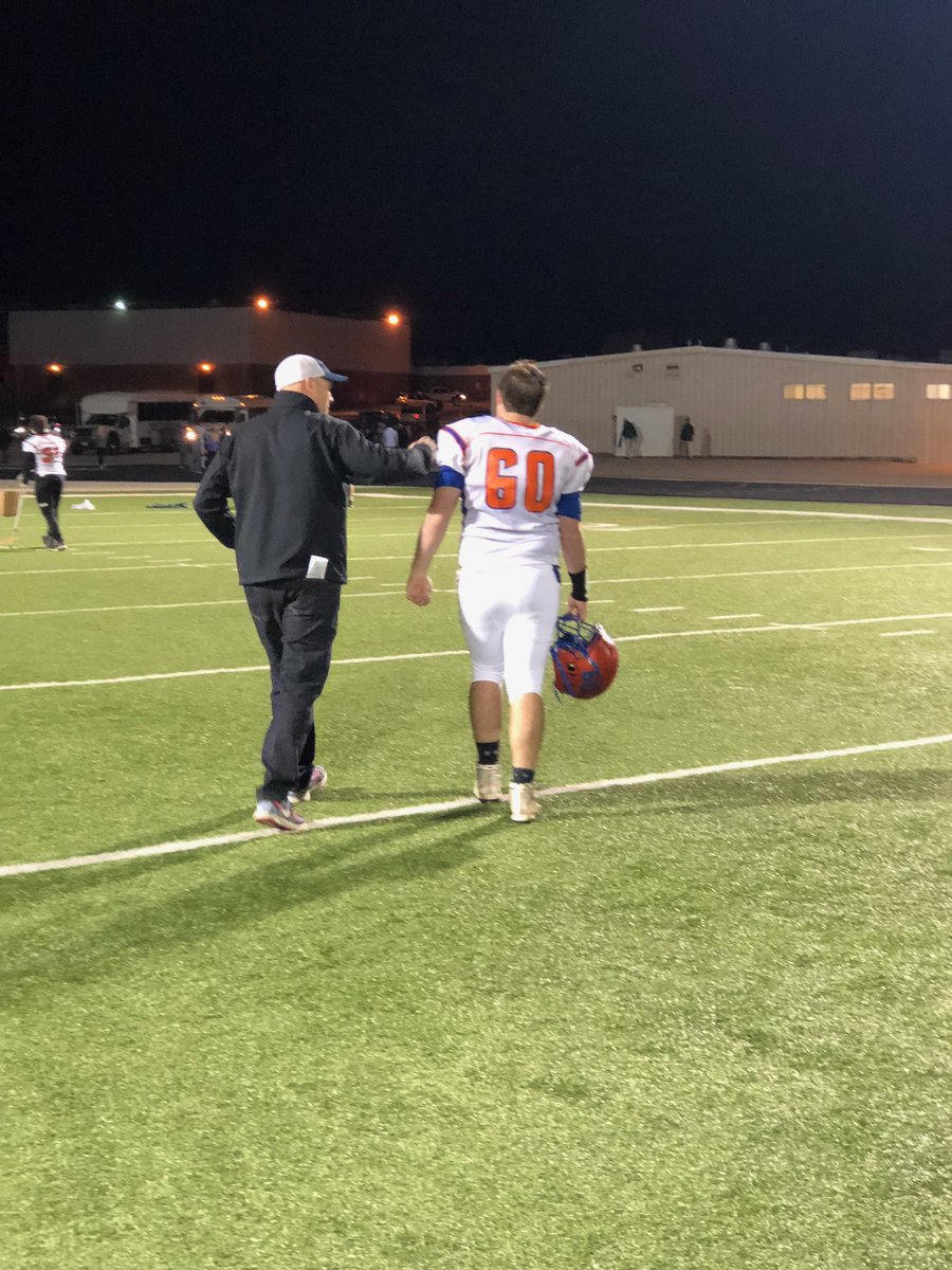 My son Caleb started playing football in 3rd grade and tonight it's all over. I enjoyed coaching u until Jr High. We've shared some great memories together. Life brings new seasons and we walk off of this field with a bond beyond football. Proud of the man u are.