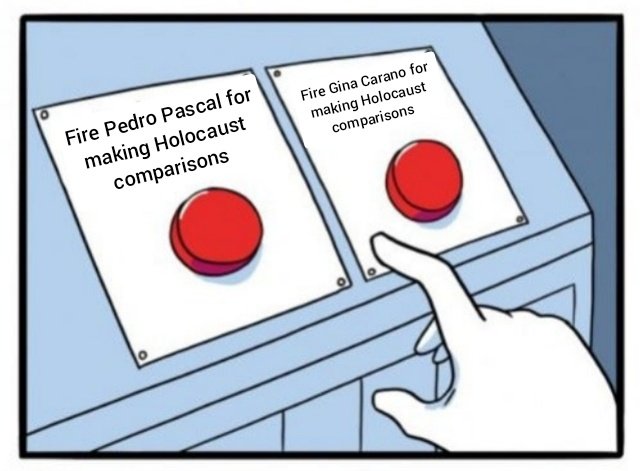 #FireGinaCarano because of her abhorrent posts.. Now#Firepedropascal because of HIS abhorrent posts As a Jew I recognize a persecution when I see it, and that is exactly what@Disney is doing.#CancelDisneyPluspic.twitter.com/vS2L6np4oO