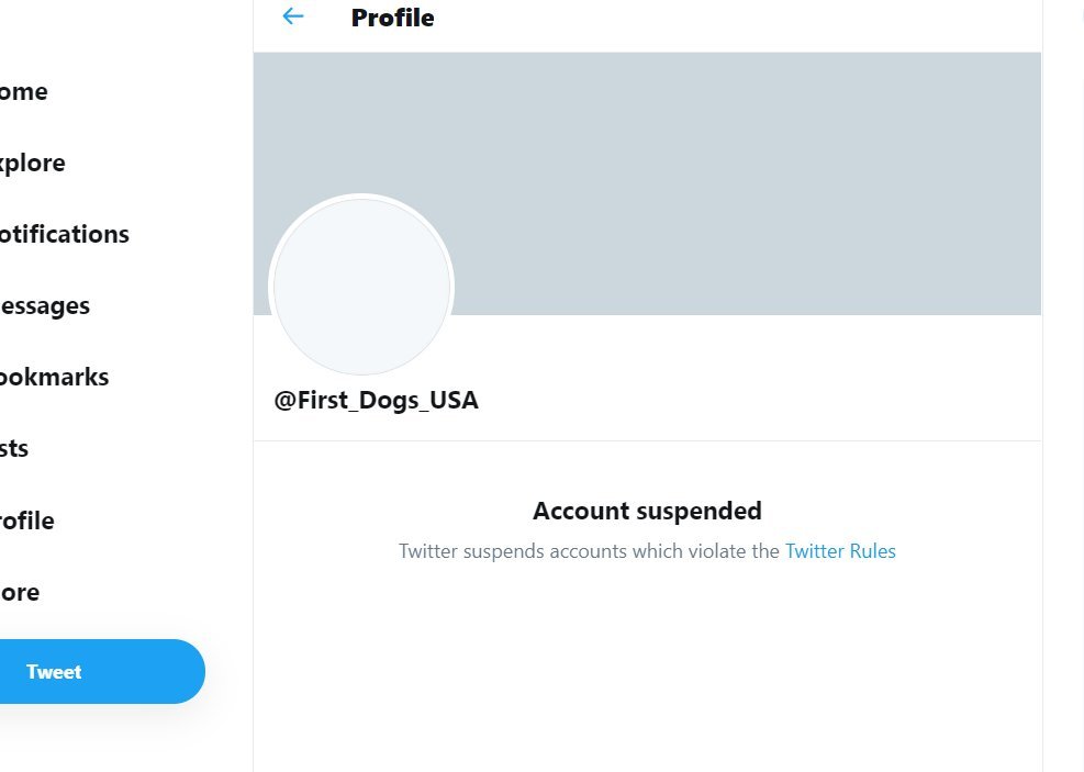 @first_Dogs_USA#FirstDogsUSA Twitter account is suspended? Is it becuase Joe Biden has yet to take office? pic.twitter.com/bJtEpe9Y7z