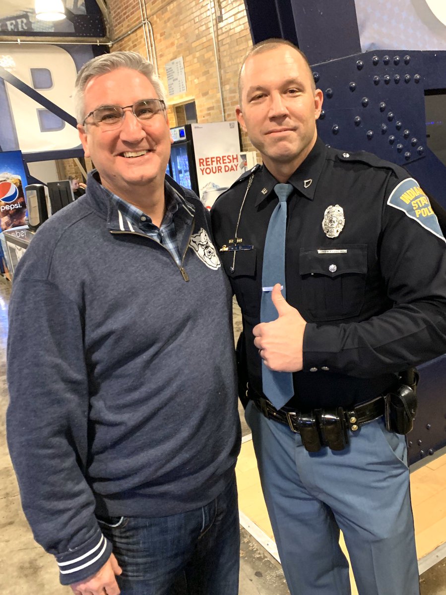 @GovHolcomb helping recognize@IndStatePolice Trooper Jim Cruse at tonight’s@ButlerMBB game. Trooper Cruse is the@FirstNet#firstresponder of the game. Thank you for your service! pic.twitter.com/6j7oCmZwgc – mjesto: Hinkle Fieldhouse